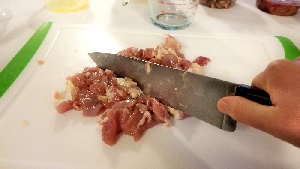 • 2 kg o 4,5 libbre di cosce di pollo con osso, con il 20-25% dell’osso rimosso O 4 libbre o 1,3 kg di carne di pollame scura disossata, con ½ della pelle rimossa
